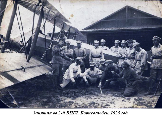 Период жизни Борисоглебской школы летчиков, когда был сделан этот снимок, очень интересно описывается автором рассказа о жизни В.П. Чкалова ( http://school55.narod.ru/chkalov.htm) (отрывок):