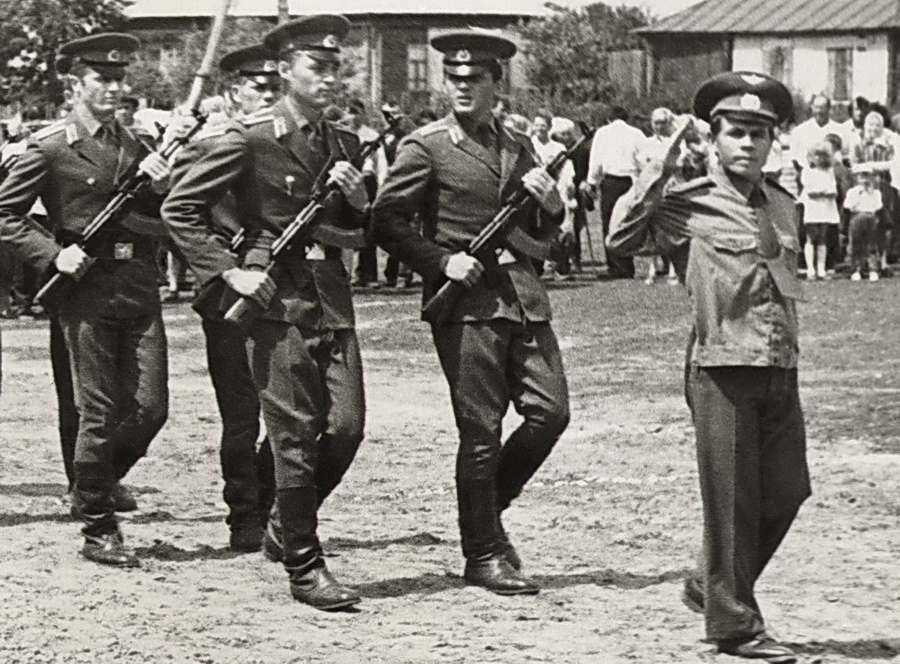 Лето 1976 г., аэродром Поворино. На открытии памятника воинам-освободителям в каком-то селе курсанты III курса 1977 года выпуска с командиром взвода лейтенантом ТАХТАМАНОВЫМ А.П.