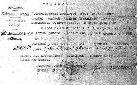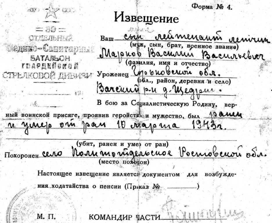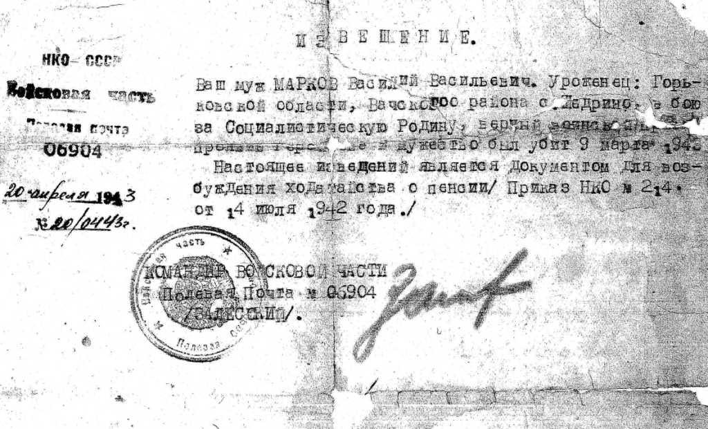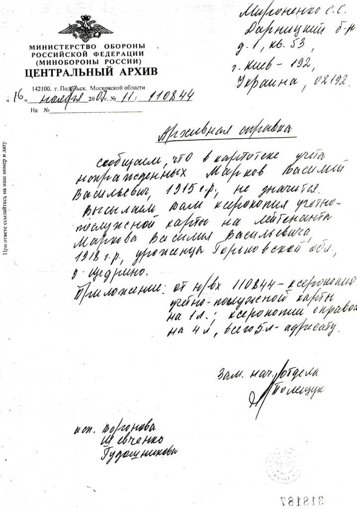 Информация предоставлена внучкой Василия Васильевича Маркова Светланой (г. Киев).
