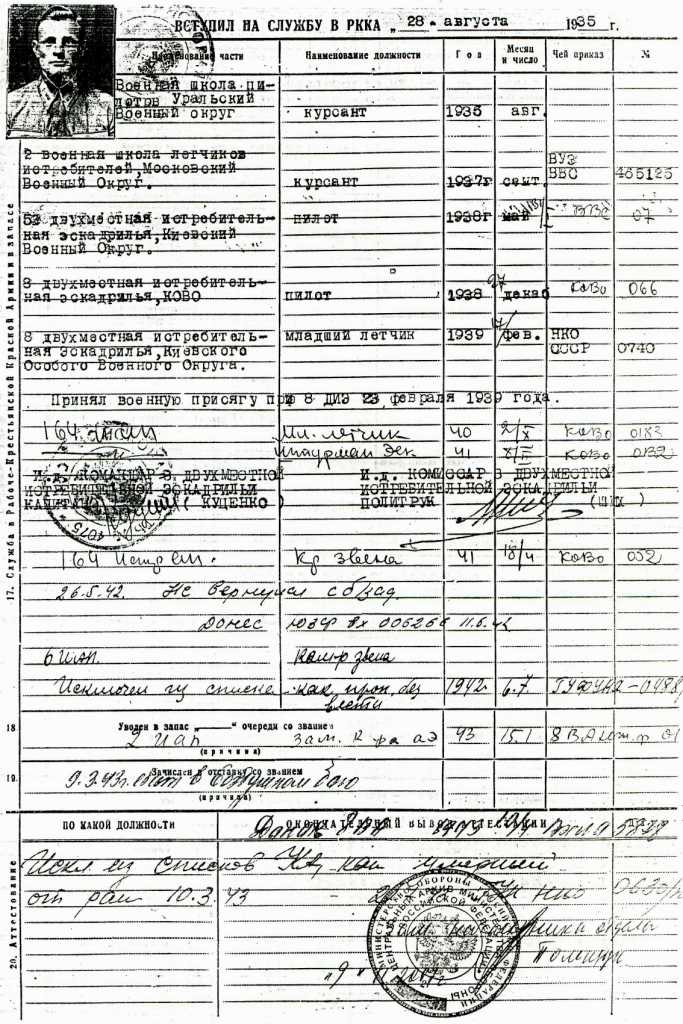 В Красной Армии состоял с 28 августа 1935 г. на летной работе в 44 Авиационной Дивизии...