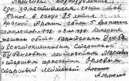Записка, свидетельствующая о сбитии Марковым В. В. вражеских самолётов: