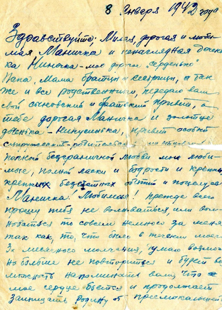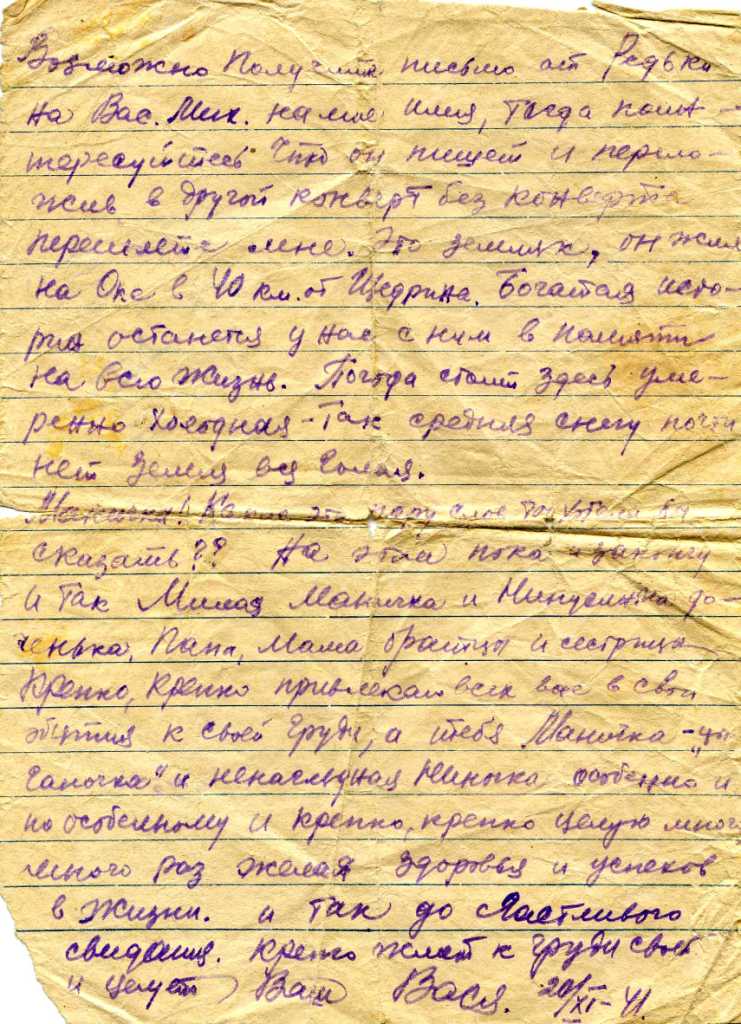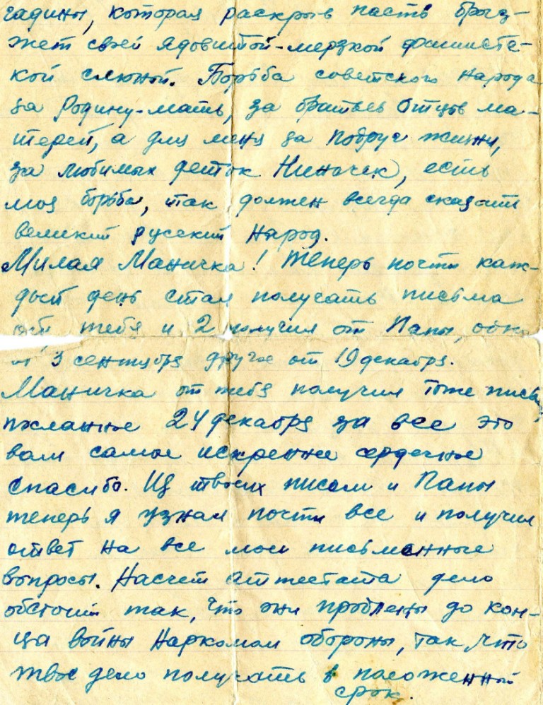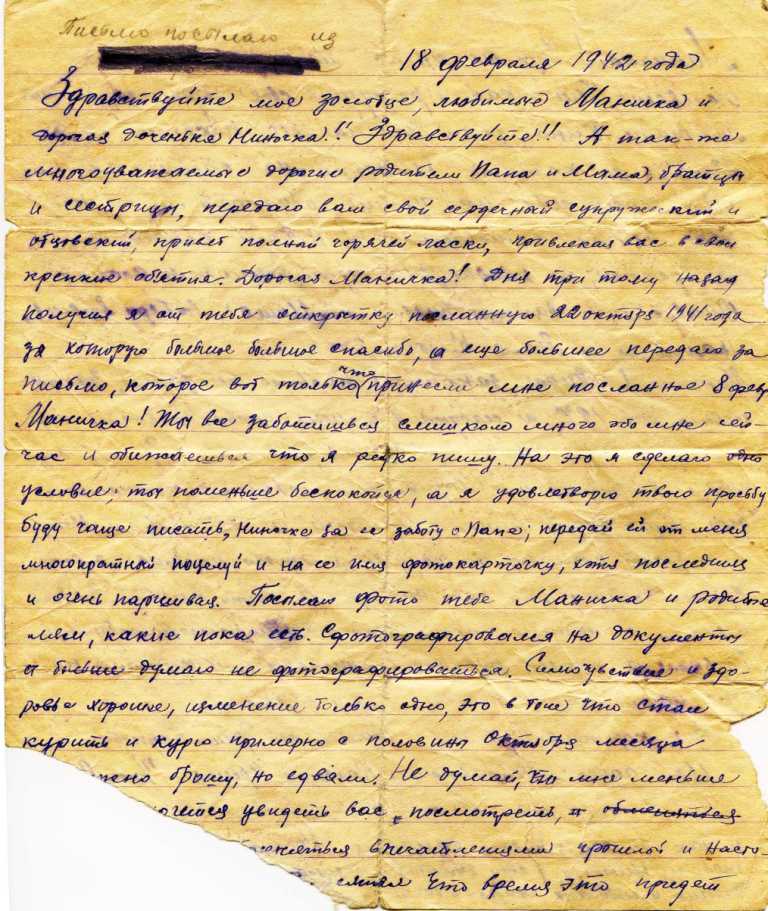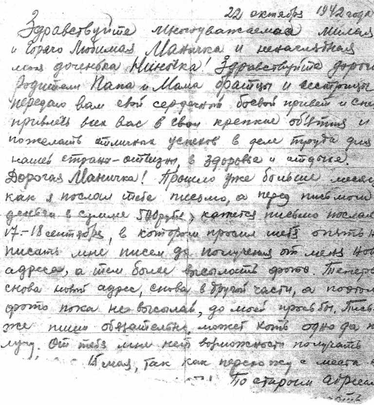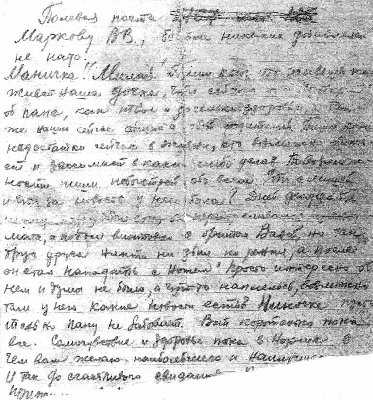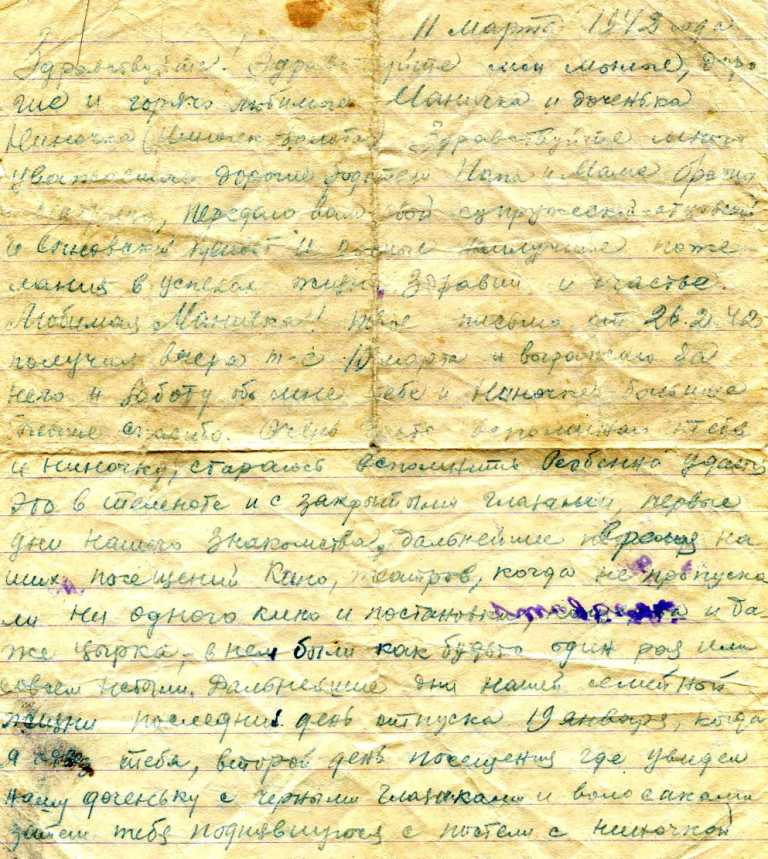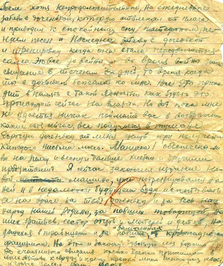 Кроме фотографий Светлана любезно предоставила часть документов из семейного архива, а также некоторые письма с фронта, которые Василий писал своей любимой жене Марии (он ласково называл её Маничка) и дочке Ниночке.