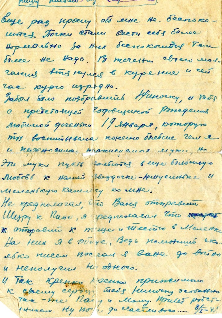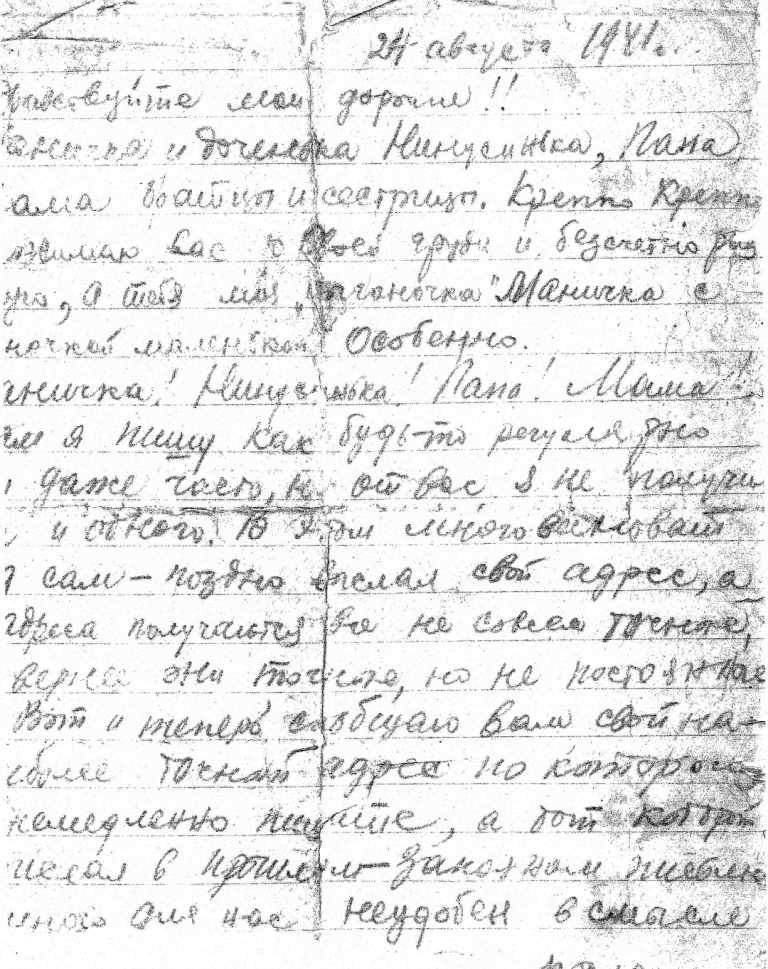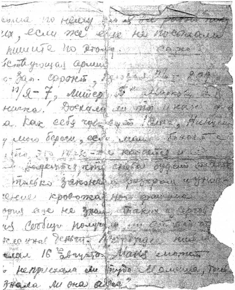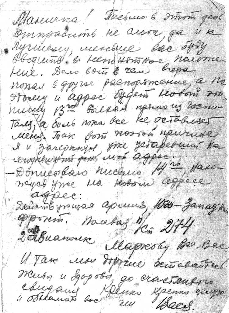 Затем другой адрес: Юго-Западный Фронт. Полевая п/ст. 899, п/я 7 литер «Б».