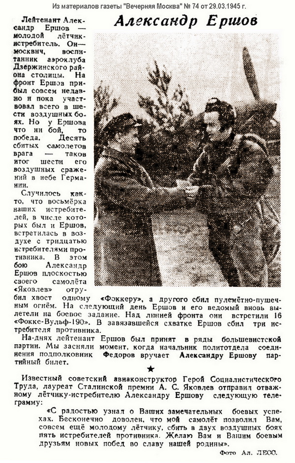 Список известных воздушных побед А.М. Ершова: