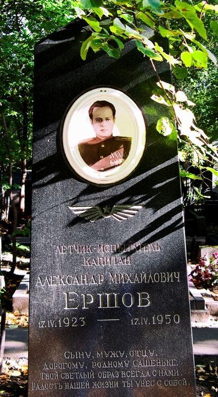 Александр Ершов погиб 17 апреля 1950 года, в день своего рождения, в испытательном полёте на реактивном истребителе Ла-15.