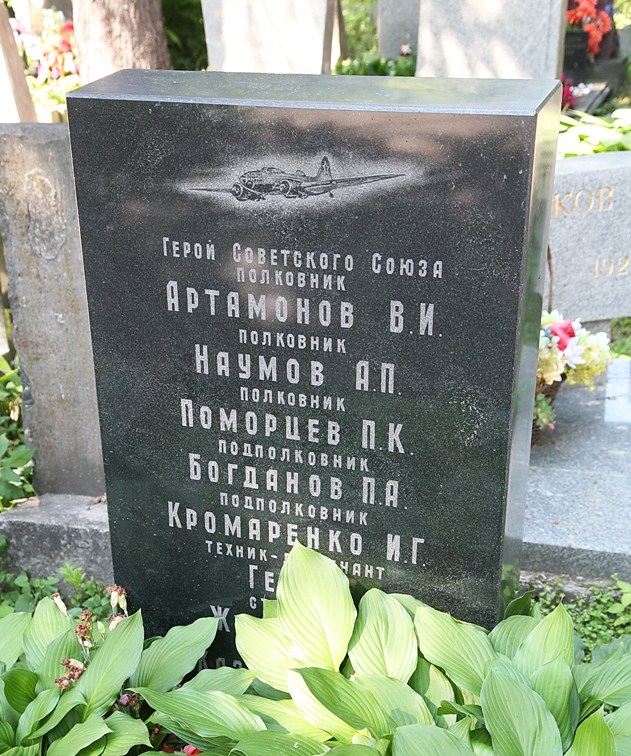 В 1946 году погибшие члены экипажа были похоронены в братской могиле на площади Ленина в городе Чита, а в 1986 году перезахоронены в сквере возле школы № 15 в Чите. В 1994 году останки погибшего экипажа были перезахоронены на Донском кладбище в Москве.