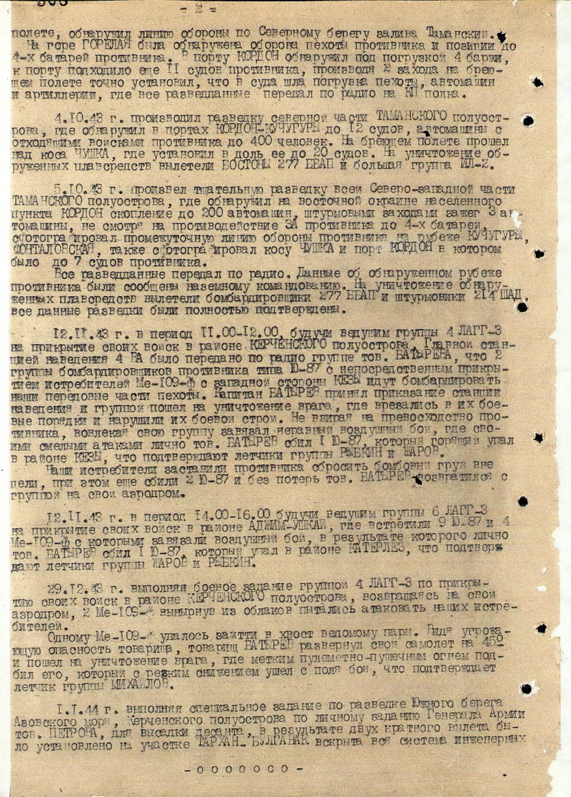 В 1943 году начались тяжёлые бои на Таманском полуострове. Гитлеровцы создали, так называемую, «Голубую линию» - сильно укреплённую полосу обороны, протянувшуюся от Азовского до Чёрного моря. Необходимо было выявить главные опорные пункты сопротивления врага, сосредоточение войск и наиболее уязвимые участки его обороны.