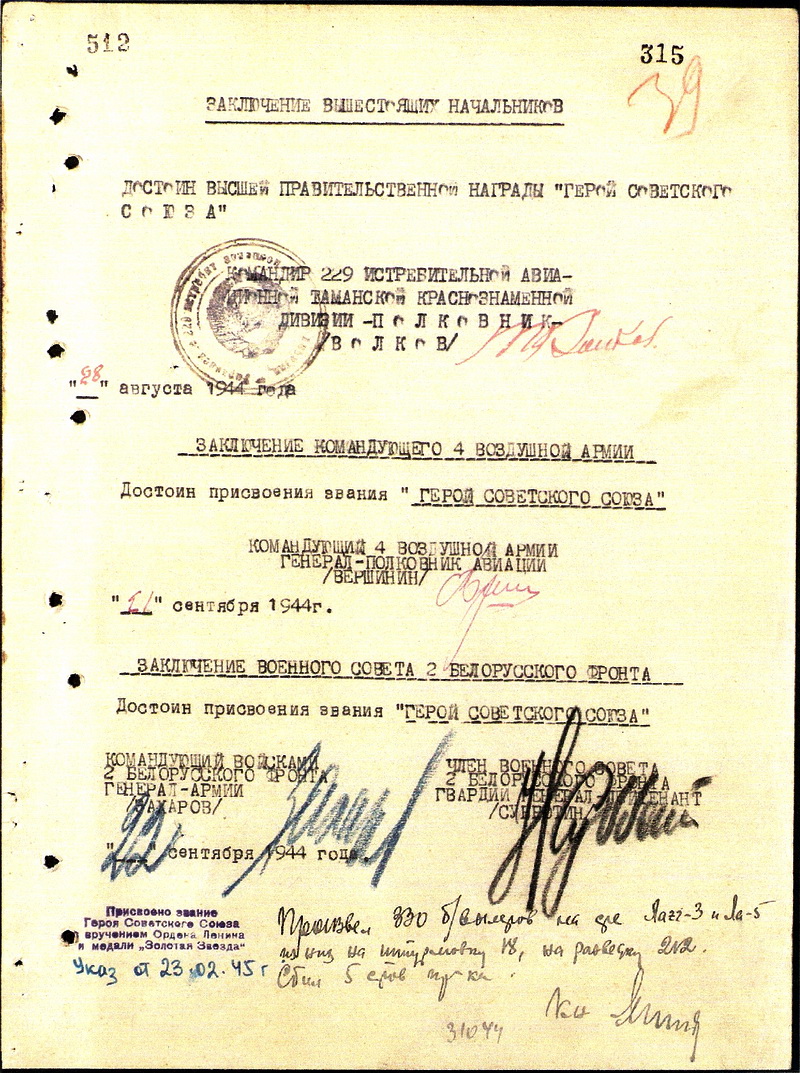 Герой Советского Союза Дата указа 23.02.1945