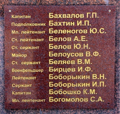 Монумент Славы - мемориальные доски с фамилиями Героев Советского Союза Костромского края - город Кострома, площадь Мира: