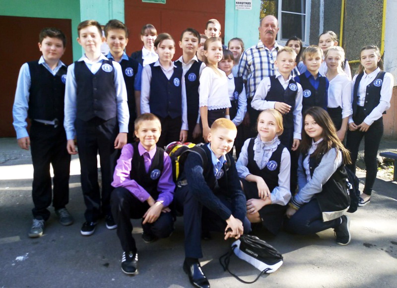 На фото ученики пришли поздравить своего первоклассного руководителя: