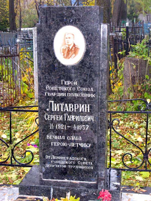Полковник Литаврин С.Г. трагически погиб в авиационной катастрофе 4 февраля 1957 года. Похоронен 7 февраля 1957 года в городе Липецке на Преображенском кладбище.