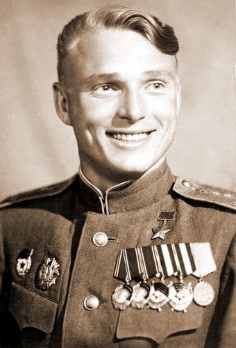 Он изменился, конечно. Возмужал, пополнел. В походке, манере говорить, держать себя чувствуется властная уверенность человека, знающего своё дело. Ему уже 29 лет. Подполковник. Под "Золотой Звездой" Героя многоцветные планки: два ордена Ленина, два Красного Знамени, Александра Невского, медали.