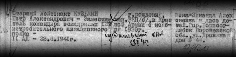 Таран Кузьмина командир полка подполковник Гордиенко не видел, так как во второй половине дня 22 июня убыл в Лиду, где временно заменил погибшего командира 11–й сад полковника Ганичева. А вскоре Гордиенко припомнили потерянные на земле при отступлении самолеты и потребовали объяснений. Андрей Васильевич заболел, начал хромать, написал рапорт и ушел с должности командира полка. А новому командиру уже было не до Кузьмина. Зато подвиг Петра Александровича хорошо видели жители Каменки: Василий Мазниченко, Ян и Амелия Хвойницкие, Иван Добрук и многие другие. Мазниченко и Добрук первыми прибежали на место падения самолёта после тарана. Рядом с его обломками лежал лётчик. В нагрудном кармане нашли партийный билет на имя Петра Кузьмина, а рядом планшет с документами, на котором тоже были его фамилия и инициалы. Все эти важные реликвии Василий Мазниченко вручил лично первому секретарю Щучинского райкома партии Степану Шупене. Кому передал их Степан Петрович, никто, увы, так и не удосужился спросить. А ведь умер Шупеня в 1979 году.