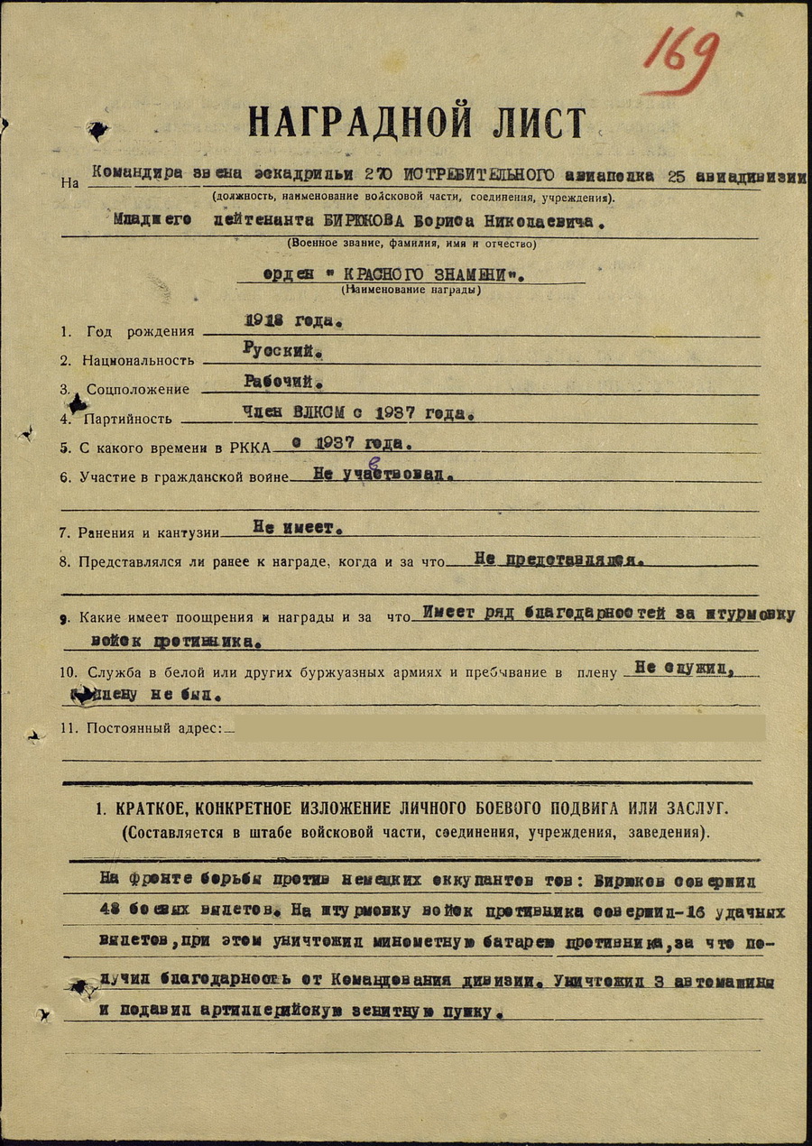 Происходили и воздушные бои. Впоследствии, спустя несколько месяцев, в боевой характеристике Бориса Бирюкова будет записано: в групповых боях сбил 10 вражеских самолётов. Да, именно в групповых и ни одного - лично. Обстановка диктовала свои условия. Истребитель И-153, в связи с острой нехваткой у нас бомбардировщиков, довольно часто использовался и для нанесения бомбовых и штурмовых ударов по наземным целям врага.