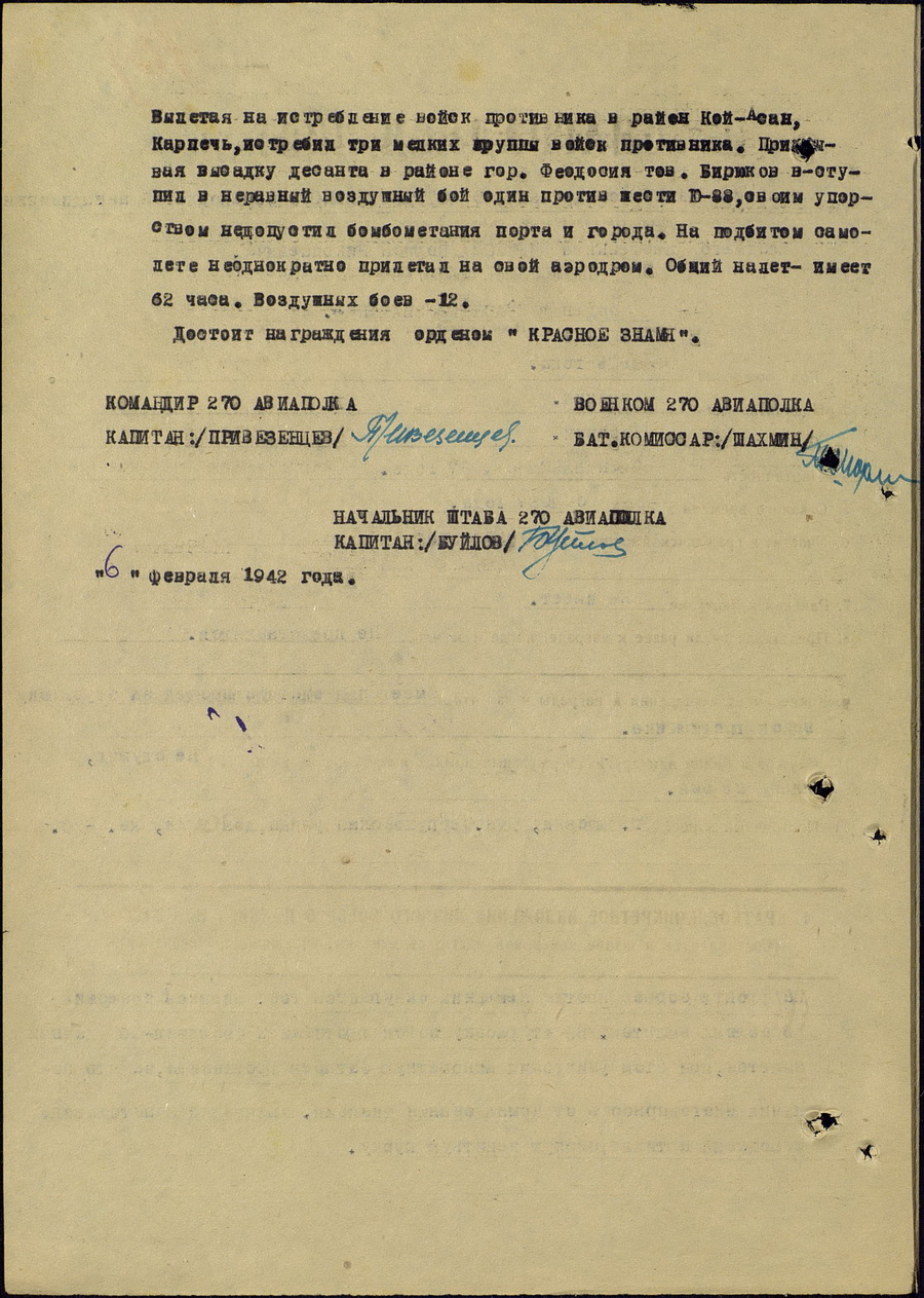 В один из дней второй половины марта 1942 года Бирюков совершил свой последний боевой вылет в Крыму.