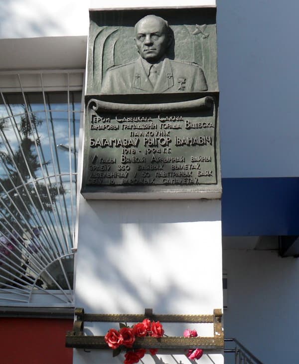 Мемориальная доска, посвящённая Герою, установлена на здании Управления военных дел Витебского облисполкома.
