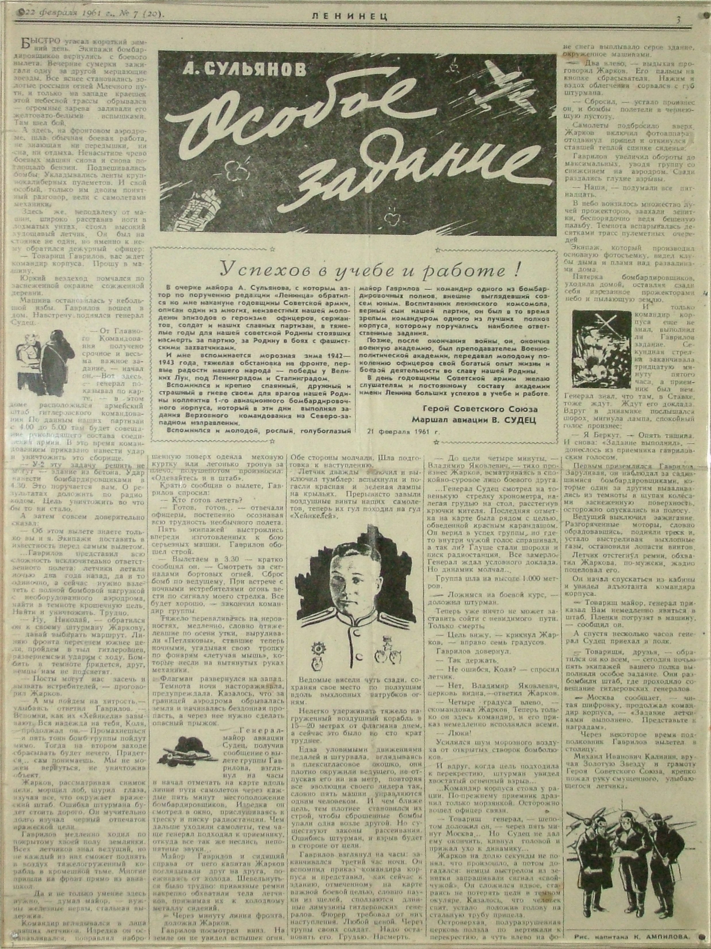 Первая - вырезка из газеты "За Советскую Родину" датирована 23 февраля 1943 года, вторая - из газеты "Ленинец" от 22 февраля 1961 года. И в нынешние дни описанные в них подвиги Гаврилова Владимира Яковлевича не могут оставить нас равнодушными:
