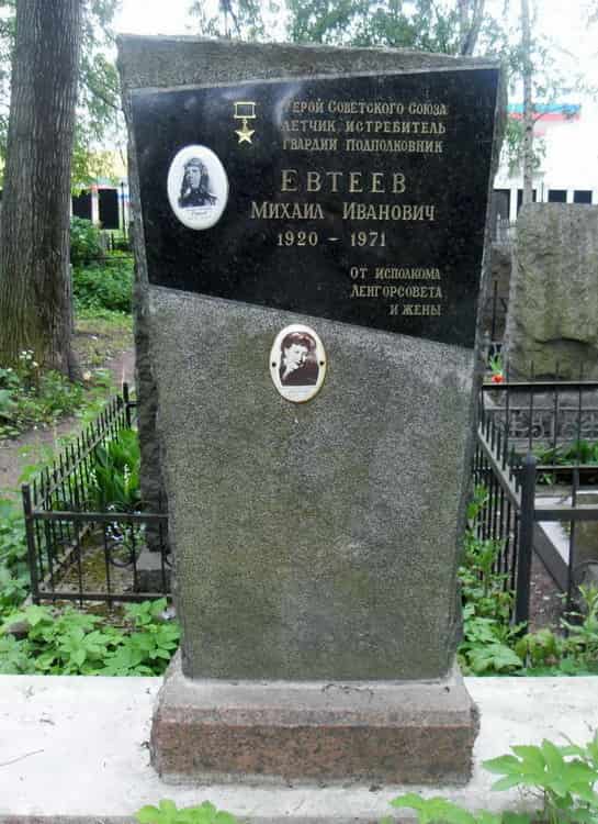 Не один десяток воздушных боёв провел Михаил Иванович Евтеев, защищая Ленинград. Он лично сбил 13 фашистских самолётов и 9 в группе со своими товарищами. За храбрость и мужество, за умение побеждать врага Президиум Верховного Совета СССР 28 сентября 1943 года присвоил Михаилу Ивановичу Евтееву звание Героя Советского Союза.