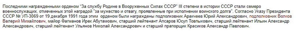 Другая информация. Награждён орденом "За службу Родине в ВС СССР" III степени