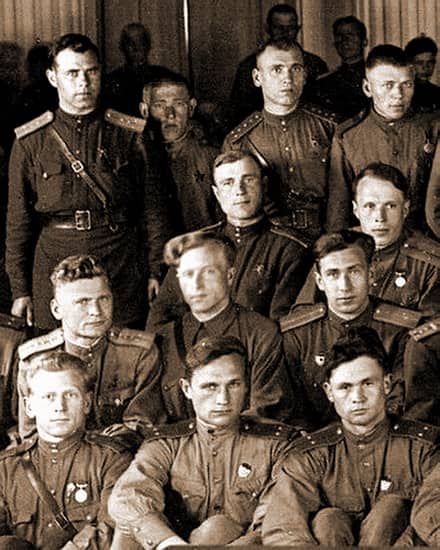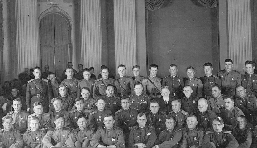 Лейтенант С. М. Камсюк среди других награждённых - третий слева в нижнем ряду.