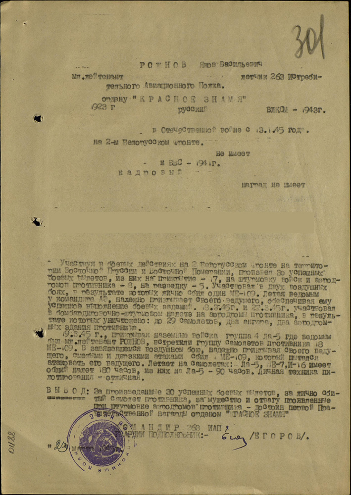 Прошло еще дня три, выходит приказ о назначении меня ведомым к комэску майору Назаренко. И все, до конца войны я с ним летал. Мы с ним и на разведку вылетали, и на штурмовки, и сопровождение бомбардировщиков, и один раз чуть ли не сели к немцам.