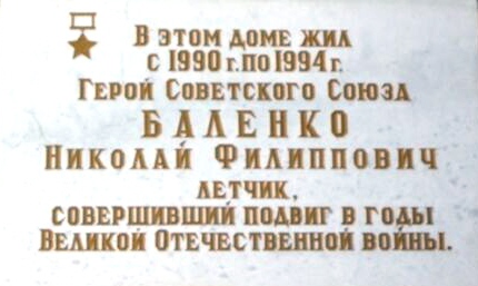 Воспитанный на лучших традициях авиашколы имени Чкалова, переняв опыт своих побратимов, Николай Баленко прекрасно владел мастерством лётчика-штурмовика. В боях за Отчизну он совершил 132 боевых вылета. Командир группы 75 раз водил товарищей на штурмовые удары и в разведку, не зная поражений.