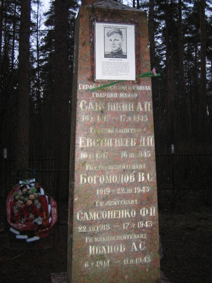 Похоронен в городе-герое Ленинграде - Санкт-Петербурге на воинском кладбище Сосновского лесопарка (место № 32), расположенного в Выборгском районе между проспектами Светлановским, Тореза, Северным и Тихорецким, где в годы Великой Отечественной войны располагался полевой аэродром «Сосновка».