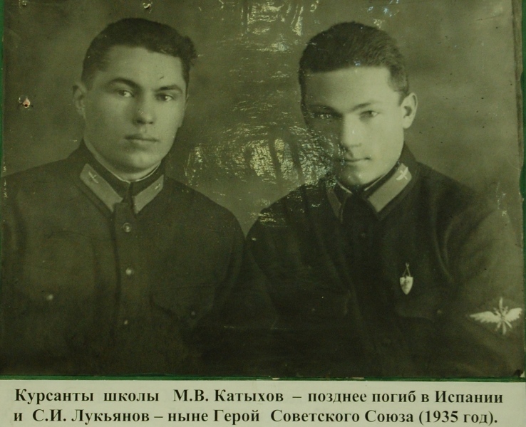 От Администратора сайта. Ни в одном из источников я не нашёл сведений о том, что Лукьянов С.И. окончил Борисоглебскую школу лётчиков. Почему-то данный факт его биографии был упущен. а сведений из архива об этом лётчике у нас нет. Однако в Музее Борисоглебского ВВАУЛ выставлена фотография, которая позволяет сделать вывод о том, что он проходил обучение в Борисоглебске: