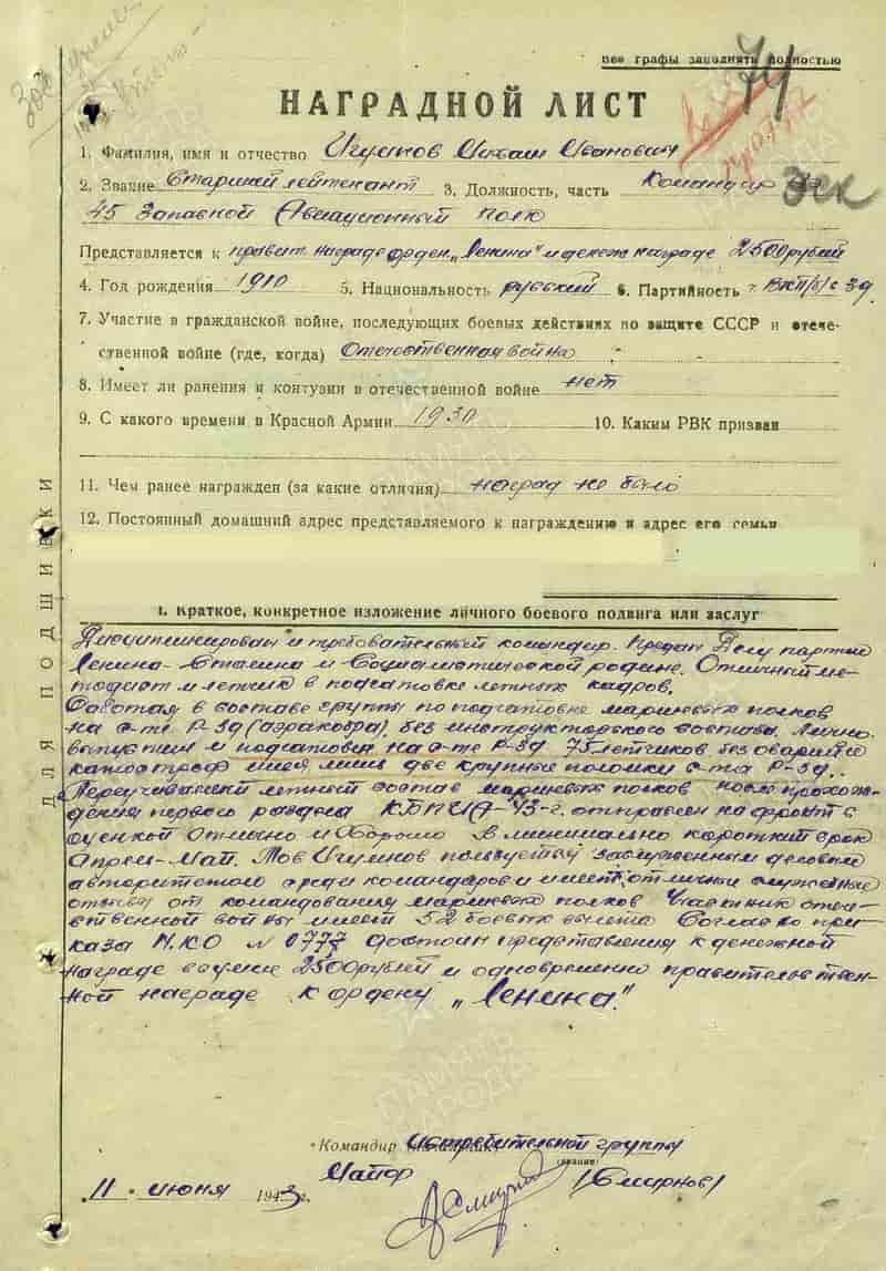 Дата окончания службы - 06.02.1946. Воинское звание - майор.