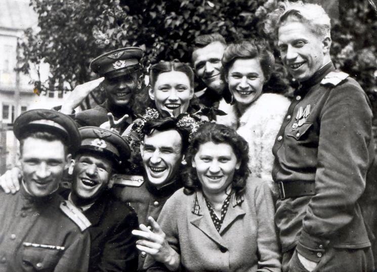 Военнослужащие 192 иап встретили известие о Победе, аэродром Штрассхов (Австрия), май 1945 г.