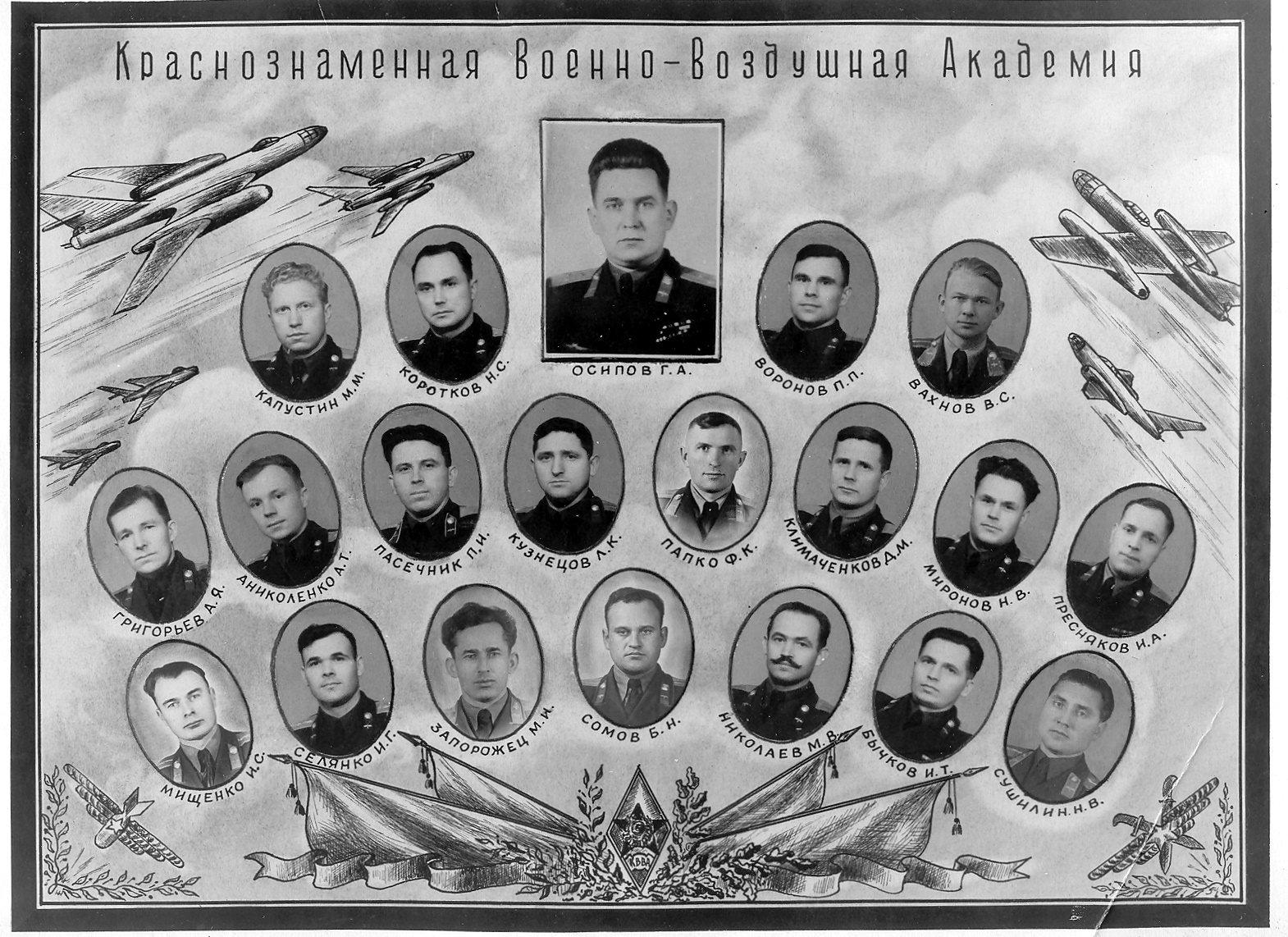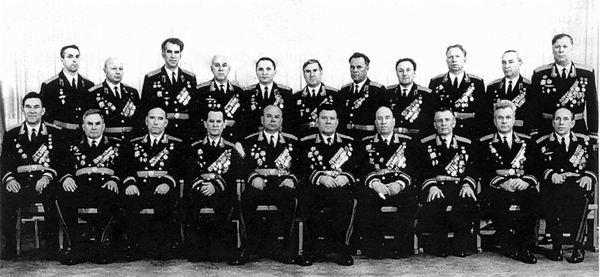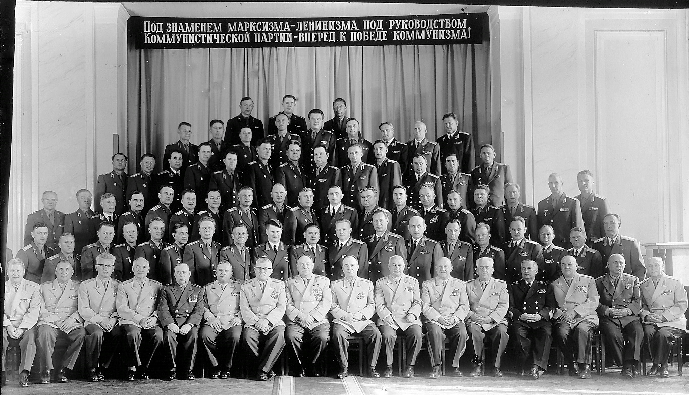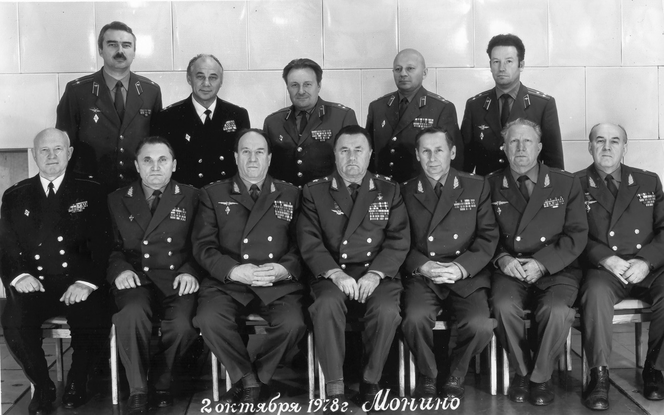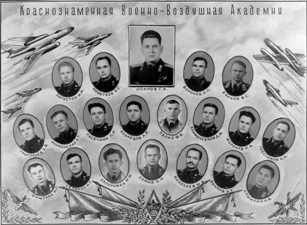 Сидят: Андреев А.П. - начальник кафедры ОИ ВВС (четвёртый справа), Волков Л.А. – второй справа, Капустин М.М. – третий справа, Рог В.Г. – второй слева)