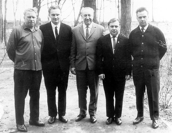 Суворов П.С. – первый слева, Сукозьянц А.С. – третий слева, Кашенцев В.М. – четвёртый слева, Перламонов М.Г. – первый справа, Капустин М.М. – второй справа