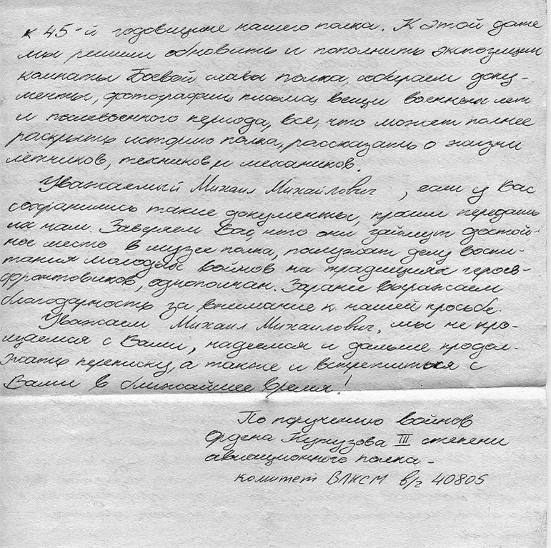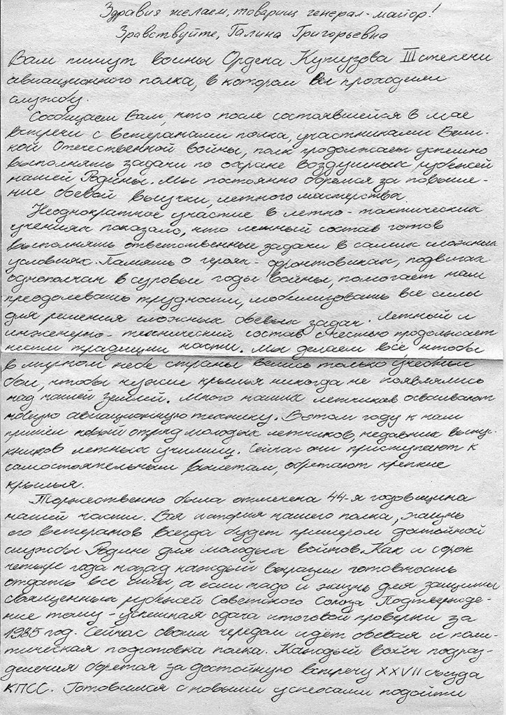 Письмо воинов 192 иап, 1985 г.: