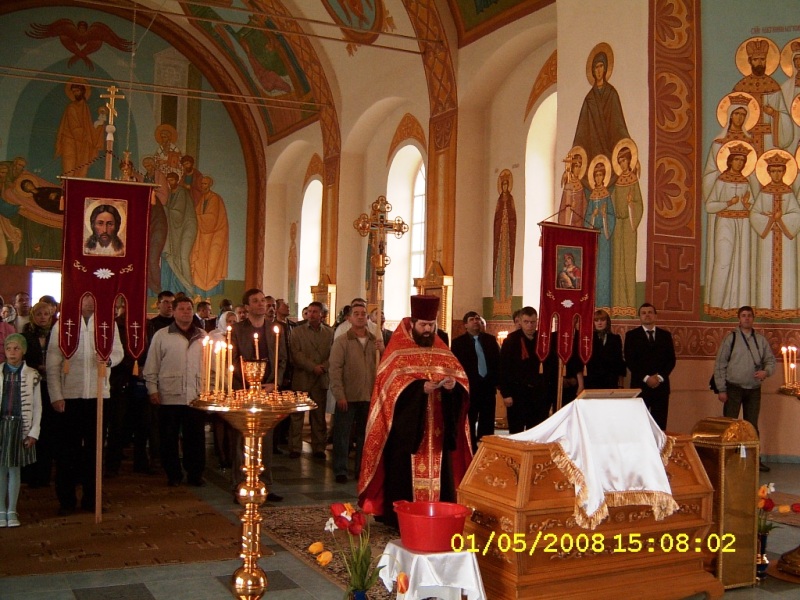 На фото: настоятель вышеуказанного храма священник Василий Задорожняк (в прошлом выпускник БВВАУЛ) передает образ Спасителя выпускнику БВВАУЛ подполковнику в отставке Фонову Владимиру Васильевичу.