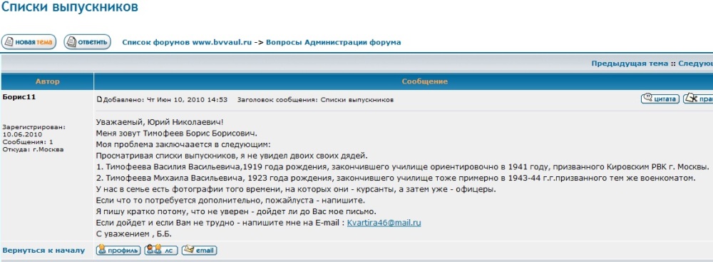 "...Сначала хочу поблагодарить Вас за то, что Вы включили в списки выпускников моих дядей.