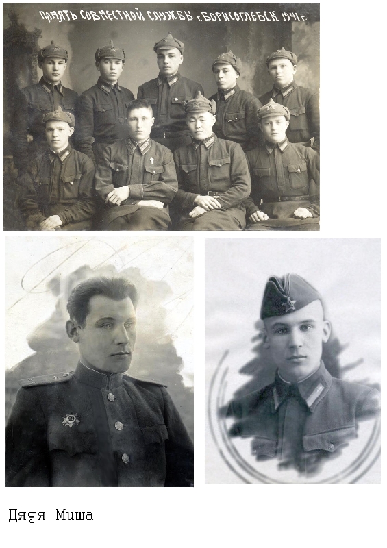 Закончил десять классов и пошел по стопам своего старшего брата, Василия. Закончил училище в 1943 году и был направлен в г. Рыбинск. Они с братом периодически переписывались. Дело в том, что дядя Вася в начале войны с группой товарищей приехали в Москву за партией самолетов. Вероятно, нужно было какое-то время для оформления документов и его на час или два отпустили домой. Из дома он написал брату Мише письмо в Рыбинск. И оно через некоторое время вернулось (за выбытием адресата).