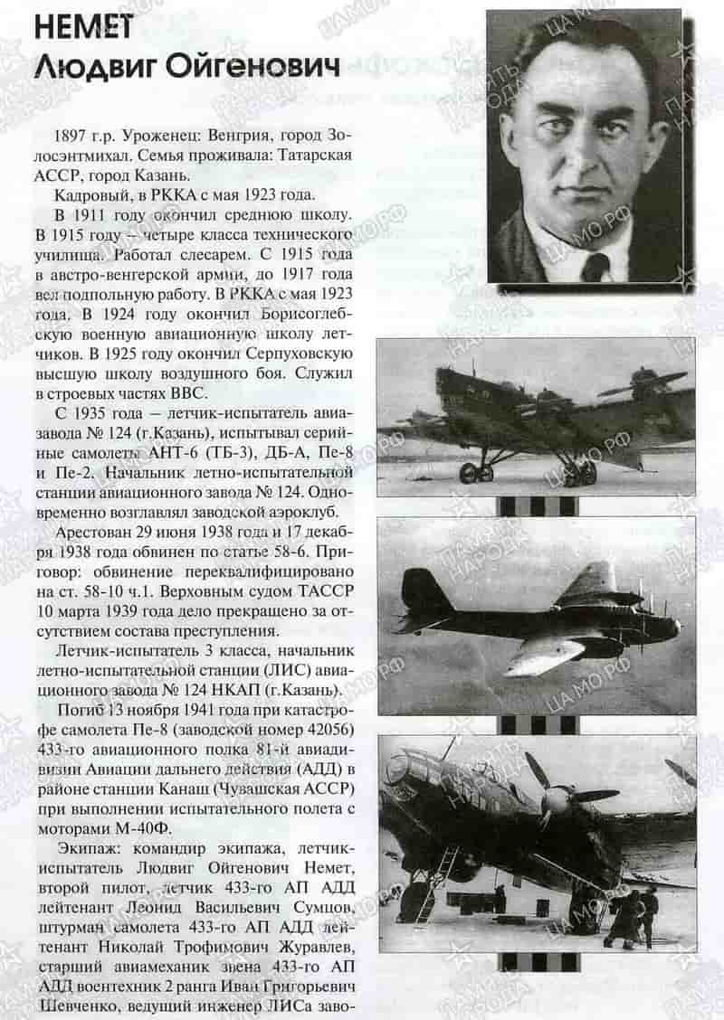 Это была первая катастрофа в истории завода. Тяжёлый бомбардировщик ТБ-7 (Пе-8), заводской №42056, уходил в испытательный полёт. Задание было не сложным - на маршруте «обкатать» новые дизельные двигатели М-40, с начала ноября установленные на этот бомбардировщик. Командиром экипажа был заводской лётчик-испытатель Л.О. Немет. В экипаж входили второй пилот Л. Сумцов, штурман Н. Журавлёв, борттехник Шевченко - все из 433 полка Дальней авиации. После испытаний на этом бомбардировщике они должны были улететь на фронт. От завода в составе экипажа летели ведущий инженер ЛИСа Я.С. Осокин, бортмеханики И.В. Шитов и С. Шарипов, радист С.В. Блинов, представитель военной приёмки В.И. Григоренко и представитель ЦИАМа А.Ф. Лапко. Всего 10 человек.