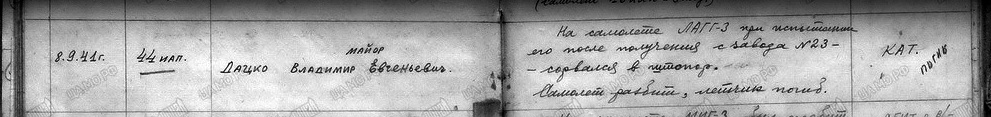 Погиб в авиакатастрофе (свалился в штопор) на Комендантском аэродроме 8 сентября 1941 года при облёте ЛаГГ-3, полученного с ленинградского авиазавода № 23".