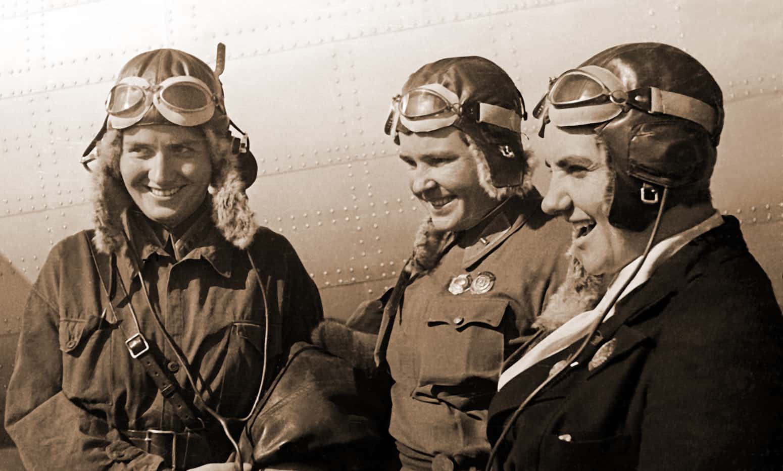 Прославленные советские лётчицы (слева направо) Марина Раскова, Полина Осипенко и Валентина Гризодубова