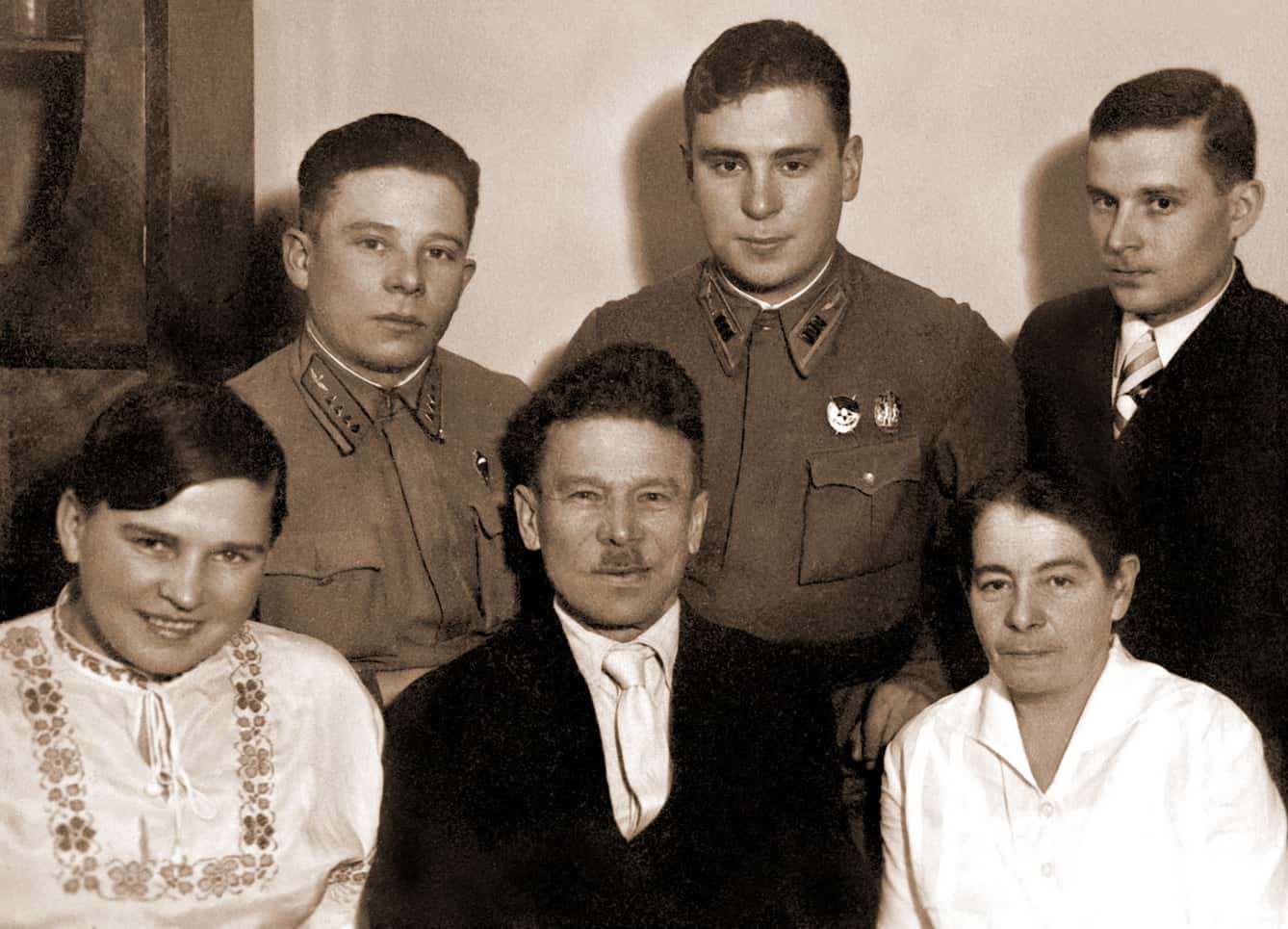 Семья лётчика Александра Степановича Осипенко (в центре, стоит). Слева брат Николай, лётчик военной авиации, справа брат Леонид. Сидят (слева направо): жена Полина, отец Степан Ильич и мать Полина Ефимовна.