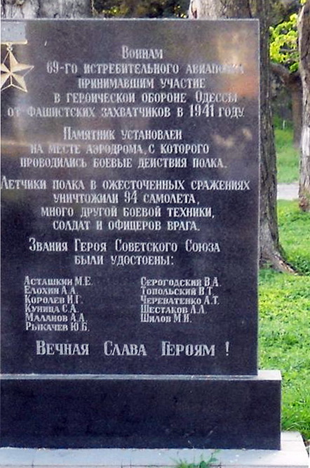 В городе Одессе на месте бывшего военного аэродрома на углу Адмиральского проспекта и Фонтанной дороги установленный памятный знак: