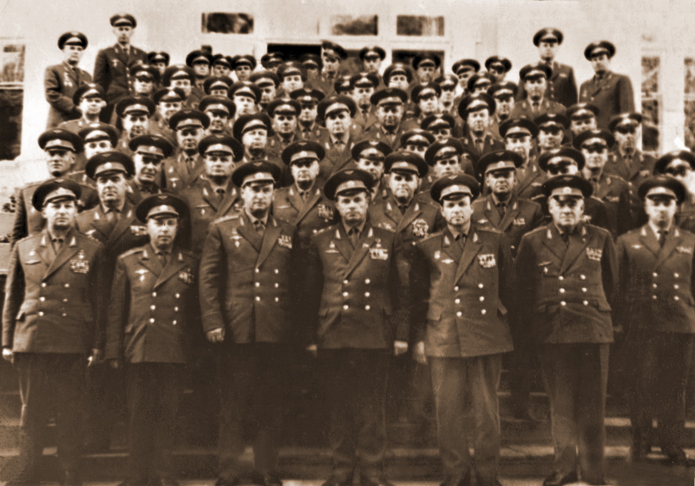 Щучинский гарнизонный Дома офицеров (бывший дворец князей Друцких-Любецких). Участники совещания командного состава Военно-Воздушных Сил СССР. 1970 год. В первом ряду второй слева — дважды Герой Советского Союза, генерал-майор Леонид Беда, первый заместитель командующего 26 воздушной армии Белорусского военного округа. В центре первого ряда — Герой Советского Союза, главком ВВС Маршал авиации Павел Кутахов, крайний справа — генерал-майор Игорь Трофимов.