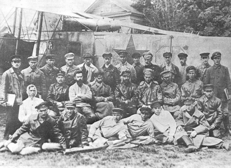 На фото - группа служащих дивизиона у "Муромца", Сарапул, 1920 г.