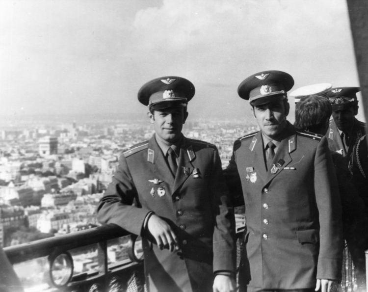 Капитаны Юрий Белоусов (слева) и Анатолий Десницкий (справа) на Эйфелевой башне.