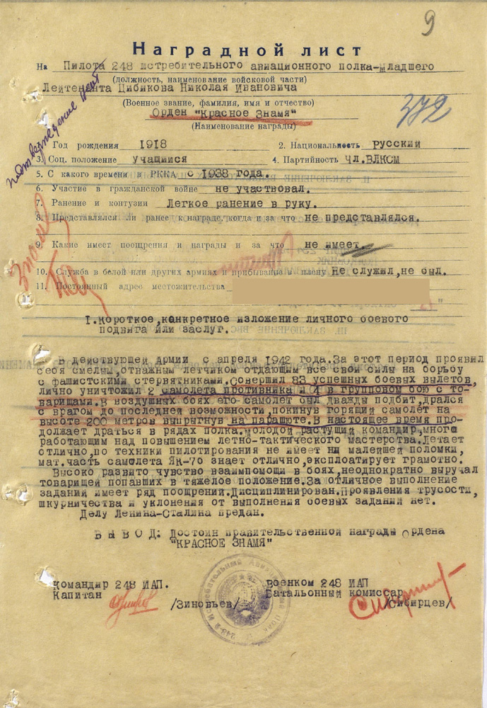 Наградной лист (информацию прислал Плотников И.Ю.: