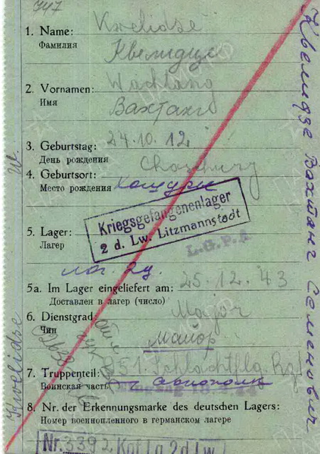 23.11.1945 года направлен для постановки на учёт в Тбилисский РВК г. Тбилиси Грузинской ССР.