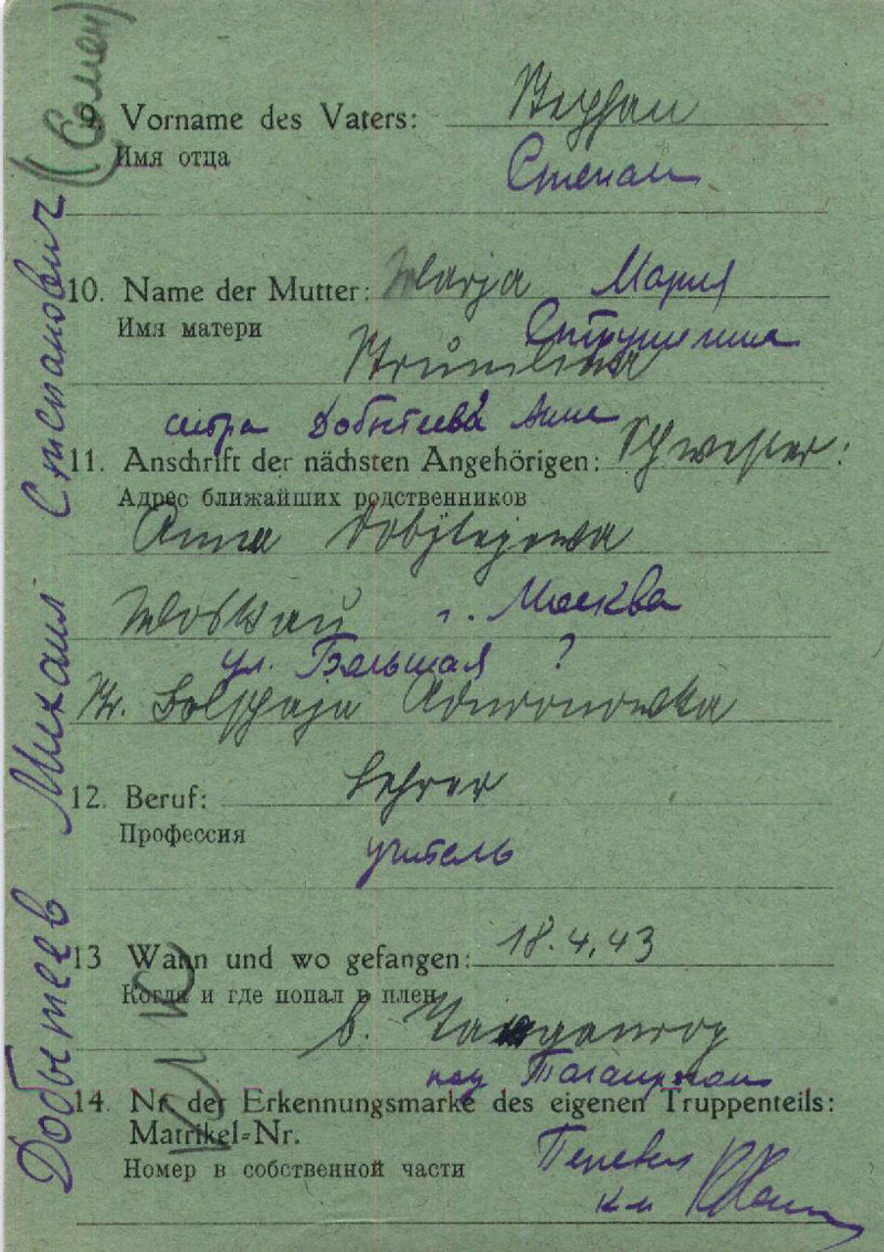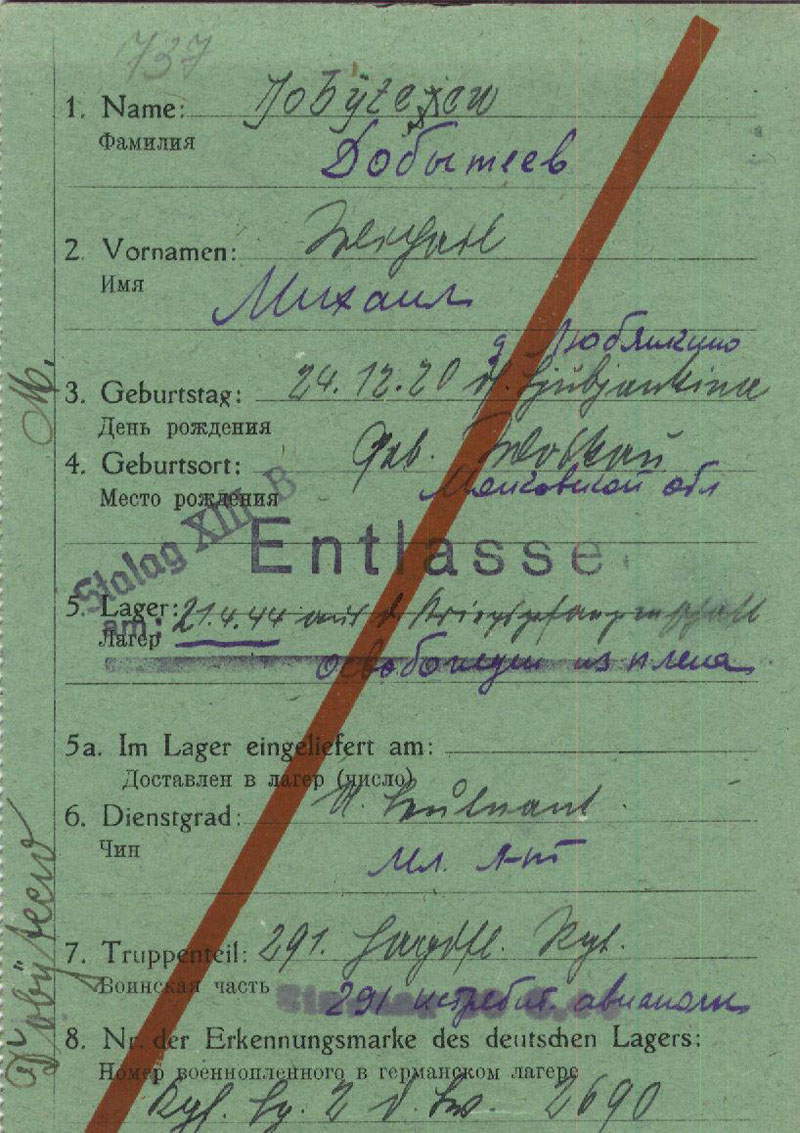 И карточка военнопленного Добытеева: