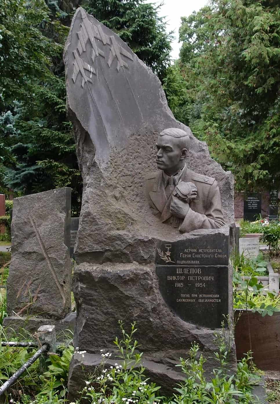 23 марта 1954 года (по другим данным 23.03.1959) гвардии подполковник Шлепов Виктор Петрович погиб в авиационной катастрофе при выполнении ночного полёта на реактивном самолёте в районе Баку, самолёт упал в 13 км от аэродрома.
