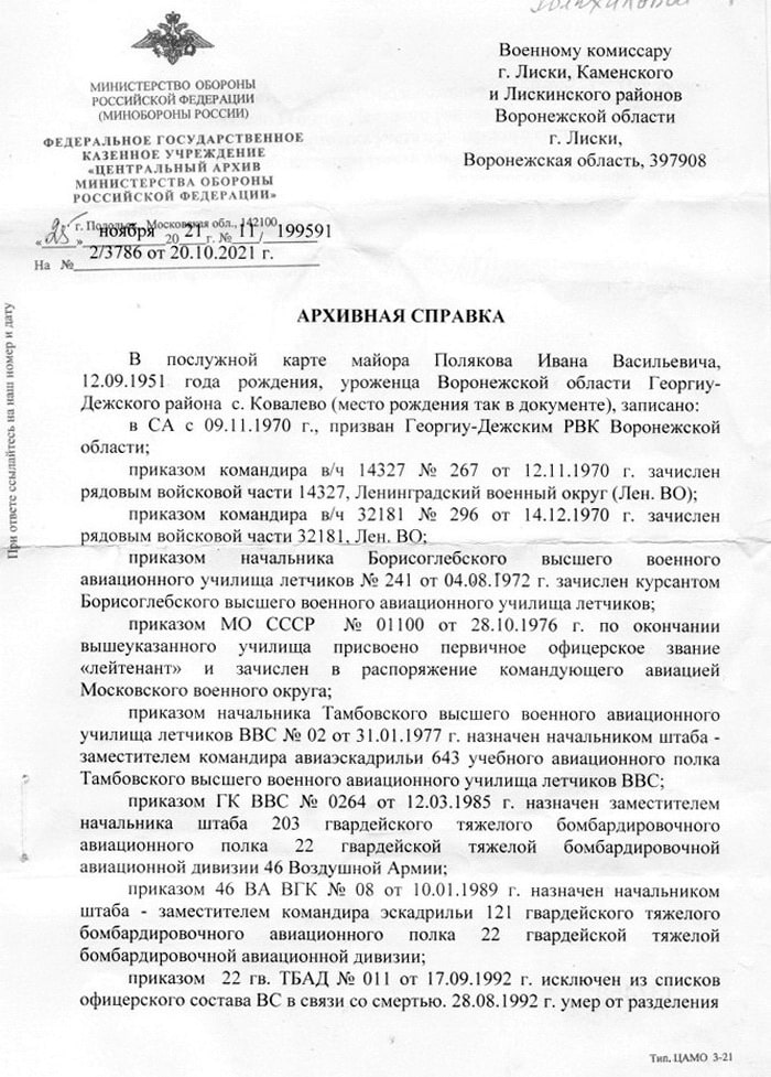Сын Олег хочет установить контакты с теми, кто хорошо знал Ивана Васильевича - его однокашников и сослуживцев. Контакты сына имеются у Администратора сайта.