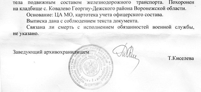 Призывался из Воронежской области, Лискинский район, Ковалёвское сельское поселение.